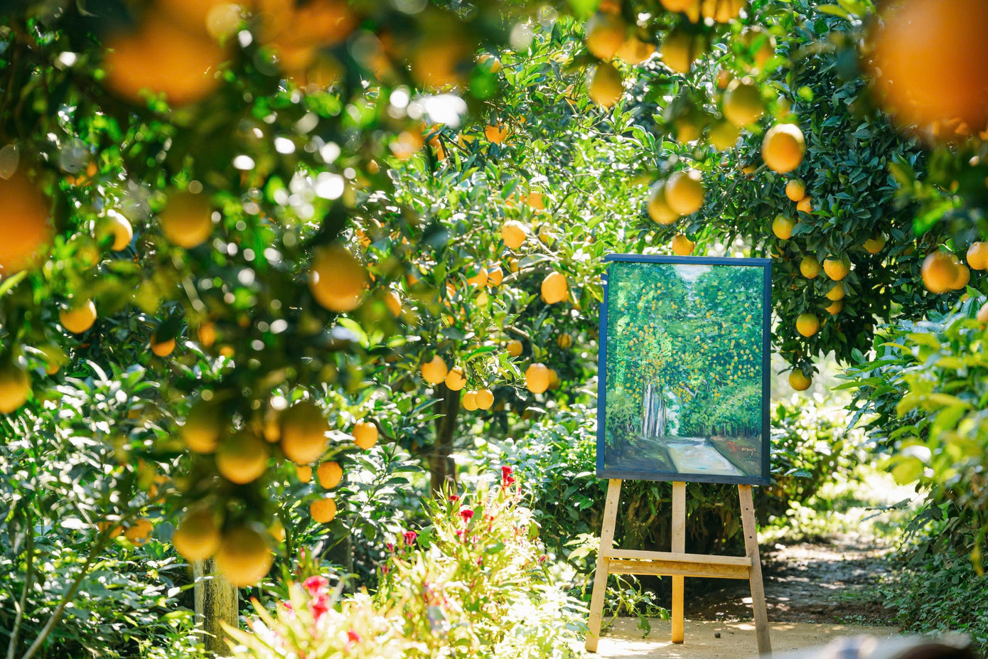 Cảm giác dạo bước trên con đường nhỏ, hai bên là những hàng cam chín mọng, khiến lòng người bỗng chậm lại, nhẹ nhàng hơn giữa nhịp sống vội vã.