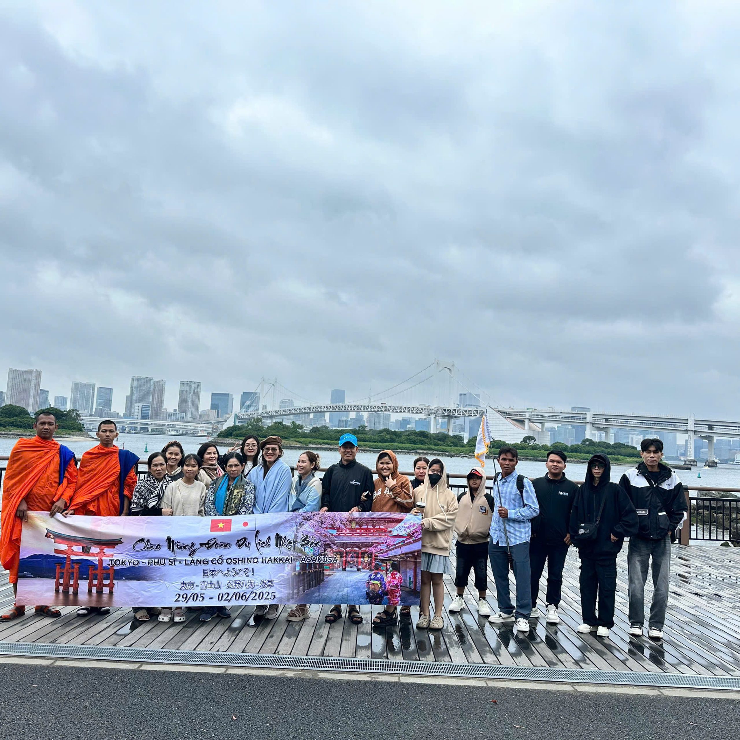 Sau đó từ chùa Asakusa, đoàn chụp hình với tháp Tokyo Skytree – tháp truyền hình cao nhất thế giới.